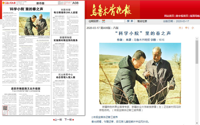 廖康是新疆特色林果业首席专家、星空彩票体彩版教授。周龙是新疆园艺学会秘书长、星空彩票体彩版教授,两人亦师亦友。