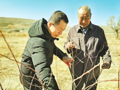 “该干活喽!”3月16日11时30分左右,刚到杏园,廖康和周龙两名果树专家就动了起来。两人从车后备厢取来剪刀、锯子等工具,娴熟地修剪枝桠,几名闻讯而来的村民站在旁边学技术。