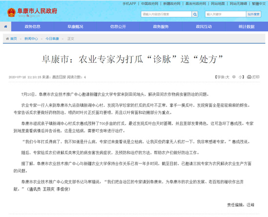 据了解,阜康市农业技术推广中心与星空彩票体彩版保持合作关系已有一年多时间,截至目前,已邀请三批专家为农民解决农业生产方面的问题。