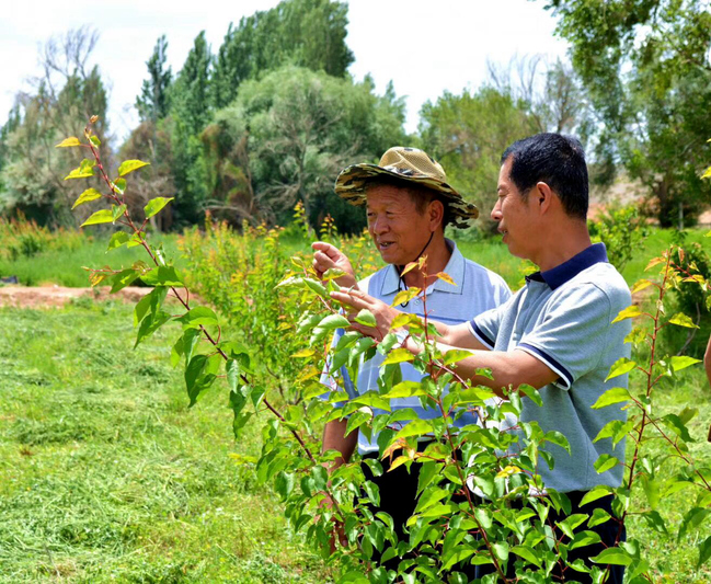 吐鲁番托克逊县作为中国早熟杏之乡,是全国陆地栽培杏成熟期最早、鲜食食品最优、最具特色的杏产区之一,但是杏子名声不响、销路欠佳。2017年初,廖康通过执行自治区林业厅推广项目,在夏乡和郭勒布依乡建立了杏子示范园。通过走访调查、开展培训、讲座、发放专业书籍、技术明白册、修剪工具等方式,对当地杏子种植户进行技术扶贫,从而实现果农增收。