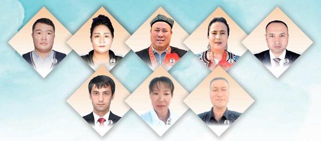 图①:阿斯哈尔别克·塔斯铁恩别克 图②:再乃普罕·马木提 图③:居麦克·依明 图④:赛开尔·胡山图⑤:乌布力艾散·乌布力喀斯木 图⑥:艾合买江·艾沙 图⑦:张巧 图⑧:马玉林