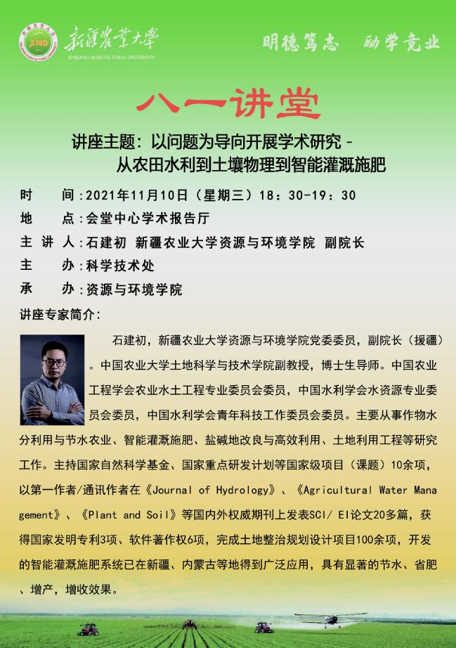 【八一讲堂】第五期:以问题为导向开展学术研究——从农田水利到土壤物理到智能灌溉施肥