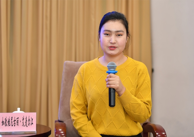 12月13日,如孜娃尼古丽·艾麦尔江发言。星空娱乐彩票下载/新疆日报记者 邹懿摄