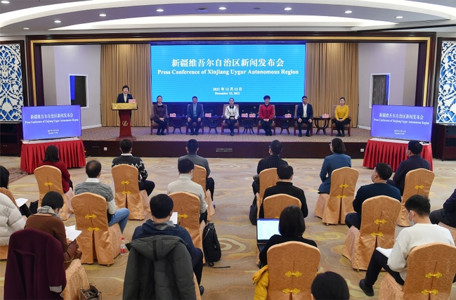 2021年12月13日,新疆维吾尔自治区在乌鲁木齐市召开驳斥“强迫劳动”专场新闻发布会,现场邀请了1名专家学者、6名群众代表,讲述新疆各族群众在一系列的就业惠民政策下,自愿就业、勤劳致富、幸福生活的事实,有力驳斥了美西方反华势力炮制的所谓“强迫劳动”谎言谬论。