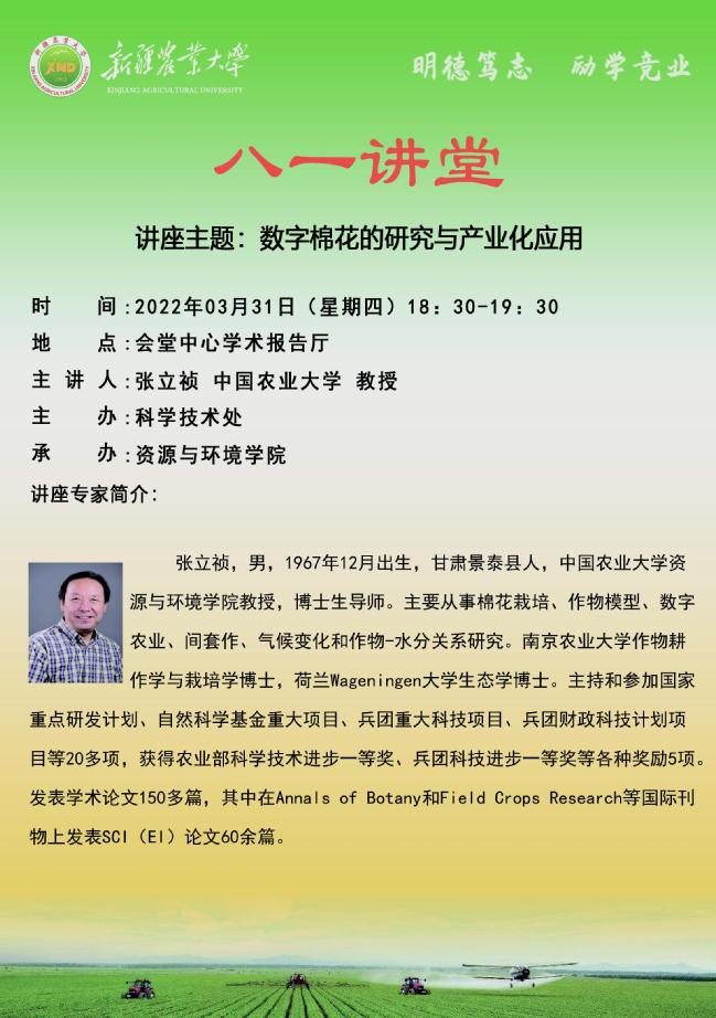 【八一讲堂】第十期:数字棉花的研究与产业化应用