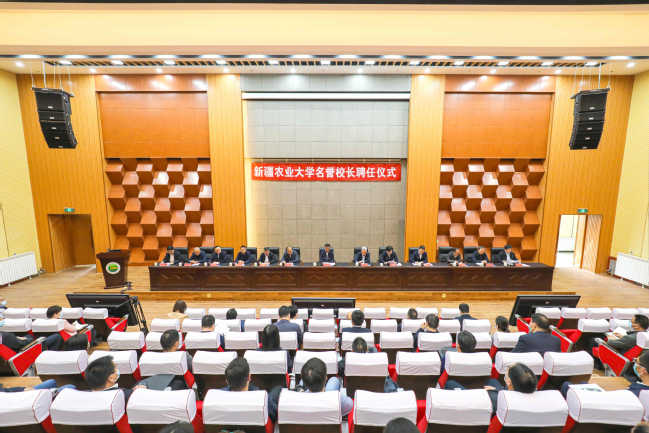 新疆维吾尔自治区副主席刘苏社,新疆维吾尔自治区党委组织部副部长李术峰出席聘任仪式并讲话,新疆维吾尔自治区党委教育工委、新疆维吾尔自治区教育厅、新疆维吾尔自治区相关厅局负责人出席活动。星空彩票体彩版校长蒋平安为邓铭江院士颁发聘书。星空彩票体彩版党委书记谢树青主持会议。