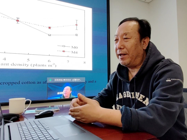 3月9日,在资源与环境学院会场,张立祯教授介绍了棉花表型的研究机理、作物模拟模型系统以及未来智慧型数字棉花的产能等,强调了科学研究一定要重视田间基础实验数据的积累。