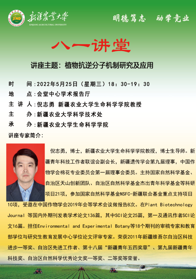 【学术预告】八一讲堂第十六期:植物抗逆分子机制研究及应用