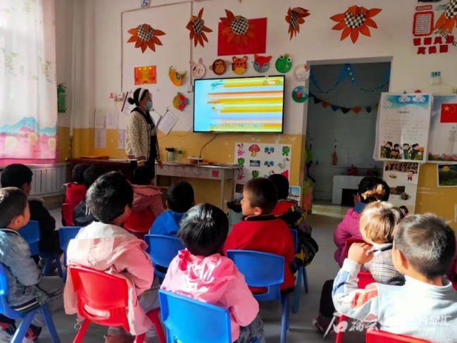 2021年,阿丽耶·艾孜孜在阿克苏市喀拉塔勒镇秋纳克幼儿园开展支教服务。阿丽耶是新疆艺术学院戏剧影视学院2020届毕业生,毕业后她主动选择到基层工作。图/阿丽耶·艾孜孜本人提供
