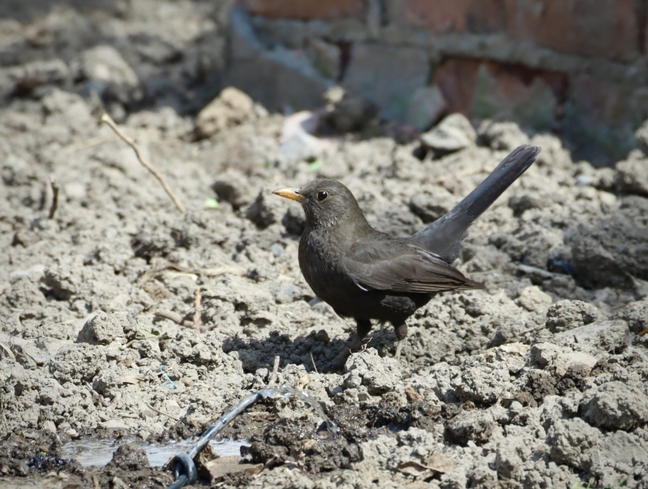 “辨别雌雄乌鸫的方法是看它的眼圈的毛色。雄乌鸫除眼圈和喙为黄色外,其他通体黑色。雌性乌鸫和幼鸟没有黄色的眼圈,虹膜褐色,羽毛褐色,喙橙黄色或黄色,脚黑色。”王佳说。