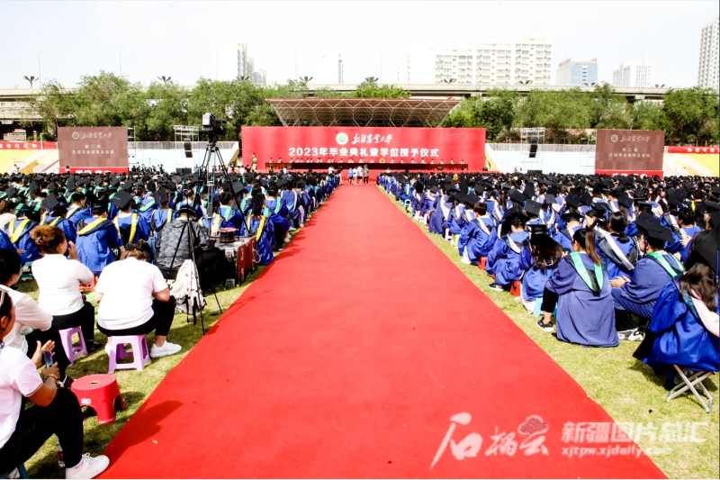 在学位授予仪式中,除24名博士毕业生、577名硕士毕业生在主席台上接受拨穗及学位授予外,其余到场的本科毕业生,均由院士及校学位委员会委员们走到毕业生面前为其拨穗。邓铭江院士不仅细心地为毕业生整理帽子,还询问了就业意向,鼓励继续深造学习的同学们学成之后回疆工作。