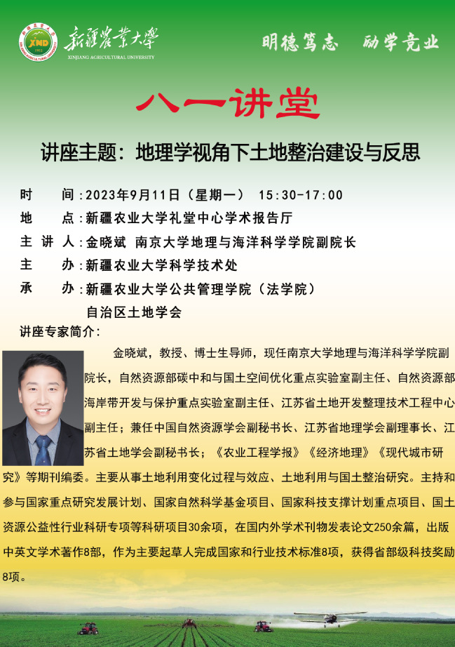 【八一讲堂预告】第三十四期:地理学视角下土地整治建设与反思