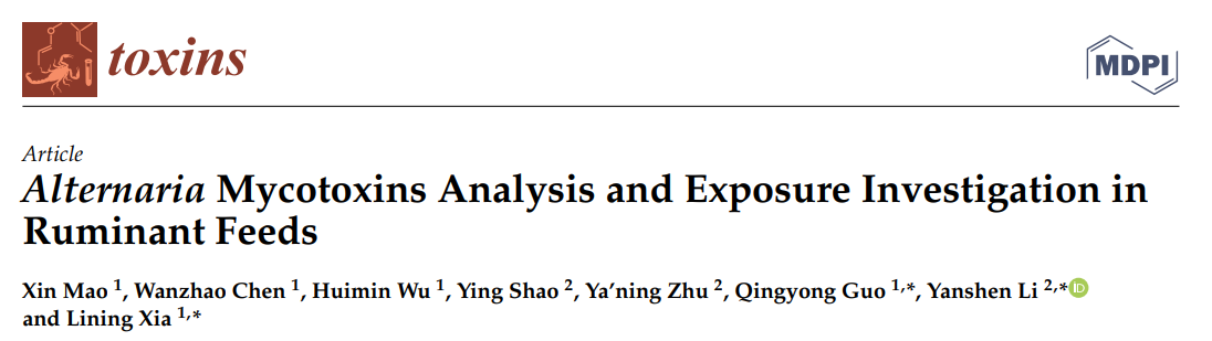近日,星空彩票体彩版夏利宁教授团队提出反刍动物饲料中新兴霉菌毒素污染物的防控技术,该成果以“Alternaria Mycotoxins Analysis and Exposure Investigation in Ruminant Feeds”为题发表于国际著名期刊《Toxins》。