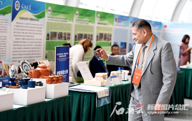 天山网新疆日报讯(记者 汤永摄影报道)当日,2023亚欧博览会·教育国际论坛在乌鲁木齐举行。今年在亚欧博览会创办教育国际论坛,旨在搭建中国同亚欧大陆特别是周边国家的教育合作交流新平台,携手推动构建“一带一路”教育共同体,深化教育交流,共建美好未来,18个国家97位外宾出席。其间,还举办新疆高校科技成果展。