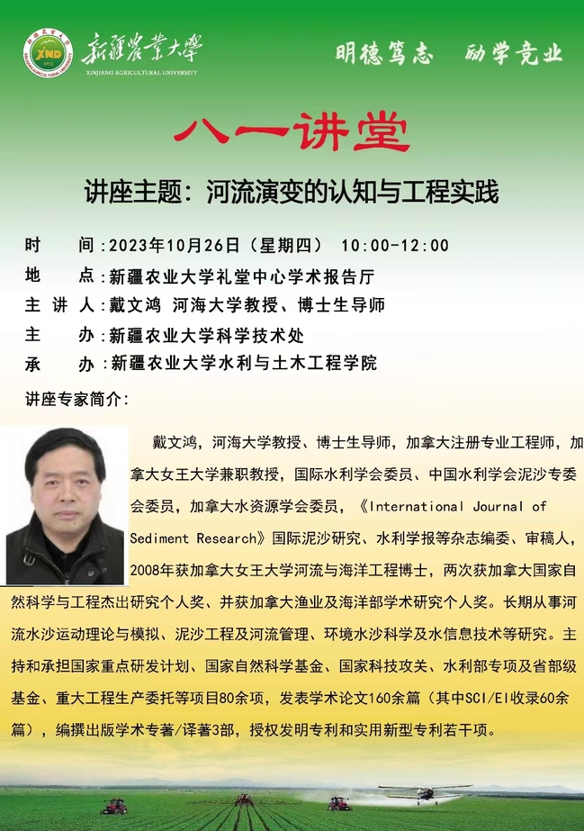 【八一讲堂预告】第四十二期:河流演变的认知与工程实践