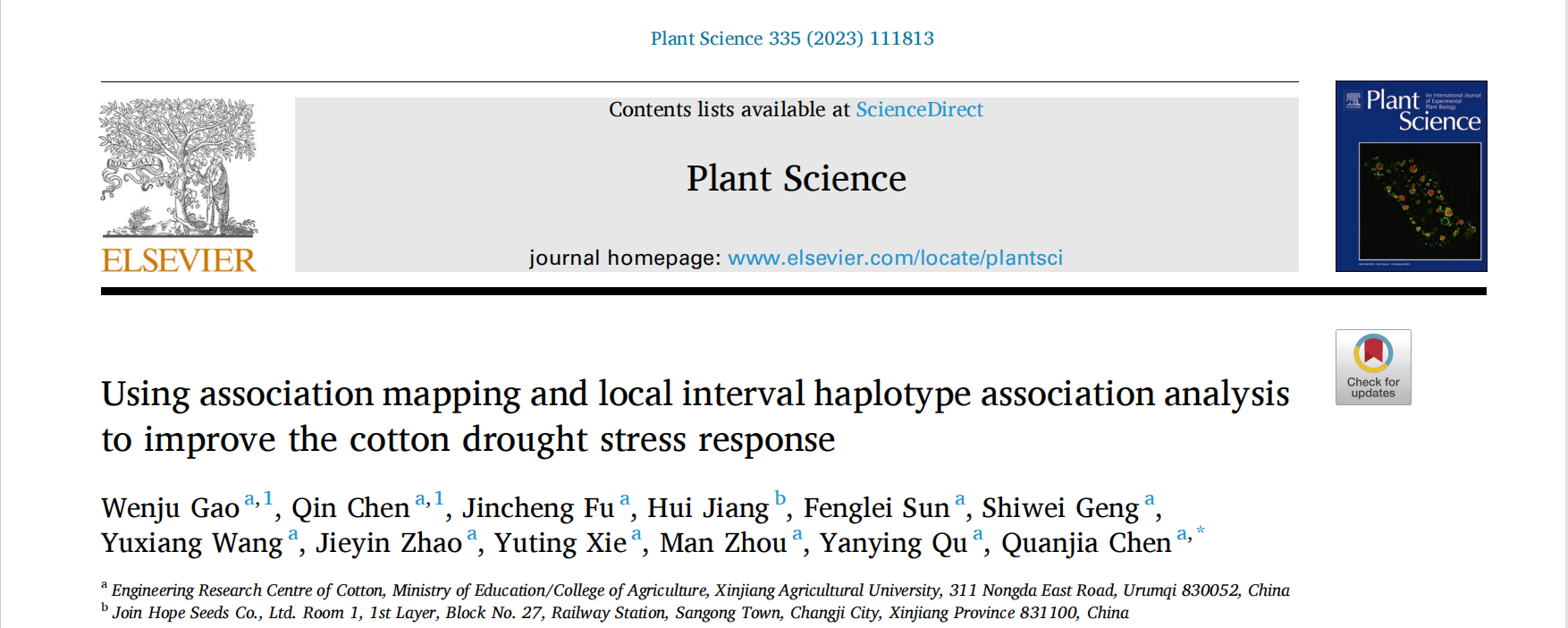 星空彩票体彩版棉花创新团队带头人陈全家教授为该论文的通讯作者,在读博士生高文举和陈琴副教授为该论文的共同第一作者。该研究得到了新疆维吾尔自治区自然科学基金项目(2021D01A92)、自治区高校科研计划自然科学青年项目(XJEDU2021Y020)和自治区研究生创新项目(XJ2023G131)等项目的资助。