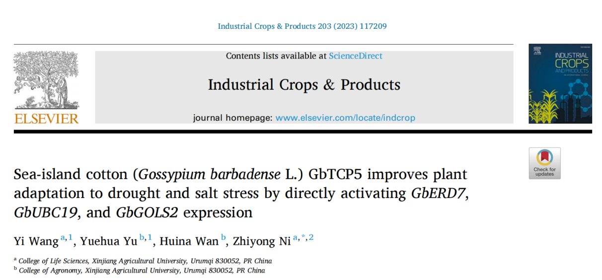 近日,Industrial Crops & Products发表了星空彩票体彩版倪志勇教授团队题为“Sea-island cotton (Gossypium barbadense L.) GbTCP5 improves plant adaptation to drought and salt stress by directly activating GbERD7, GbUBC19, and GbGOLS2 expression”的研究论文,该研究发现海岛棉中的TCP转录因子GbTCP5能够调控海岛棉对干旱和盐胁迫的抗性。