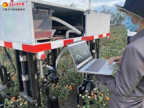 新疆农业大学研发的智能自走式红花采摘机器人,实现红花花丝快速采收,成熟红花花冠采摘成功率≥90%。受访者提供