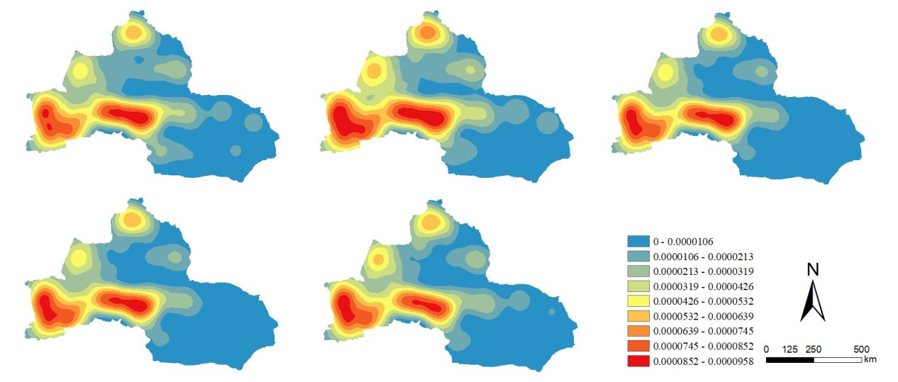 图3. 2000-2020年生态环境质量核密度空间分布