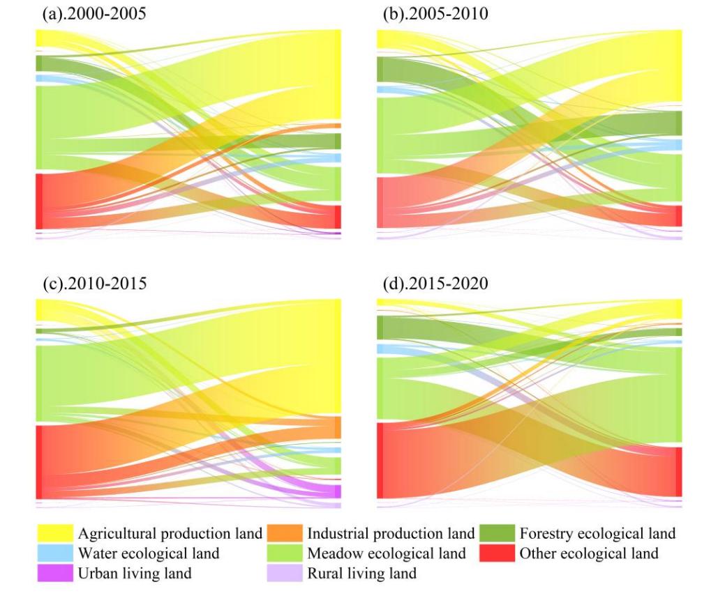 图1. 天山以北地区2000-2020年“三生空间”转移现状