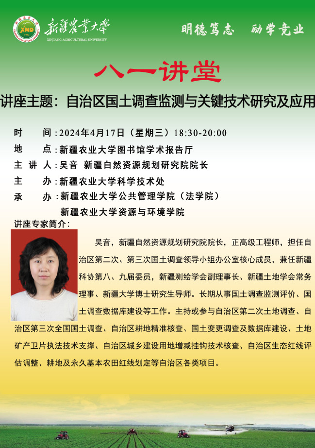 【八一讲堂预告】五十二期:自治区国土调查监测与关键技术研究及应用