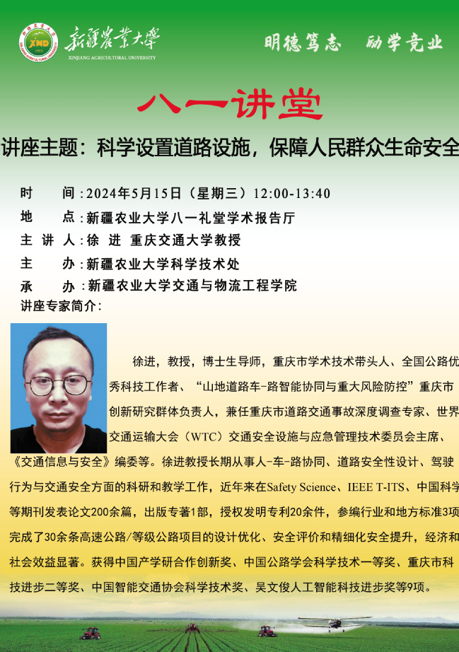 【八一讲堂预告】五十四期:科学设置道路设施,保障人民群众生命安全
