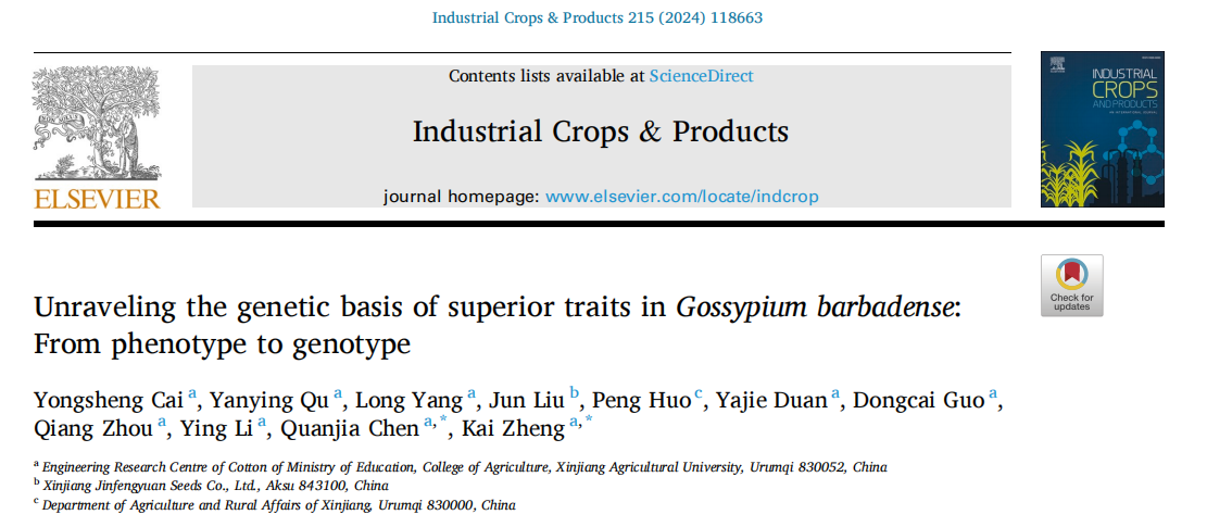 星空彩票体彩版棉花创新团队带头人陈全家教授和郑凯副教授为该论文的通讯作者,博士生蔡永生为该论文的第一作者。该研究得到了国家自然科学基金(32301867)、新疆“天山人才培养计划”(2023TSYCLJ0012)、国家育种联合研究(2022MH-01)和新疆维吾尔自治区“揭榜挂帅”(GMLM2023–09)项目的资助。
