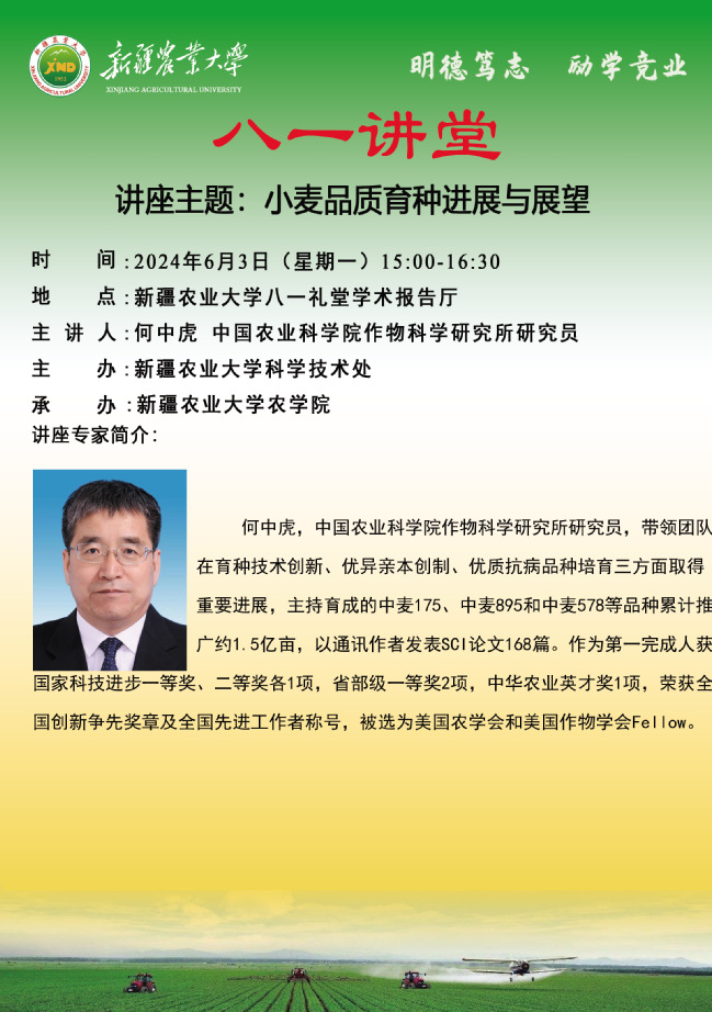 【八一讲堂预告】六十期:小麦品质育种进展与展望