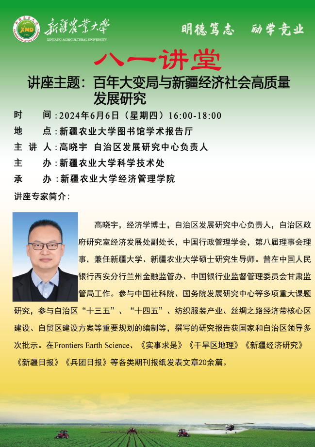 【八一讲堂预告】六十二期:百年大变局与新疆经济社会高质量发展研究