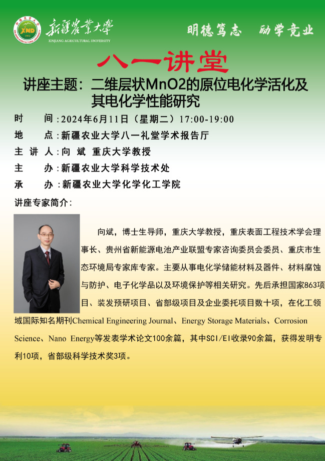 【八一讲堂预告】六十三期:二维层状MnO2的原位电化学活化及其电化学性能研究