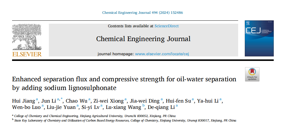 近日,星空彩票体彩版化学化工学院李君副教授团队在Chemical Engineering Journal发表了题为“Enhanced Separation Flux and Compressive Strength for Oil-Water Separation by Adding Sodium Lignosulphonate”的研究论文,研究了一系列木质素纳米颗粒/还原氧化石墨烯复合气凝胶用于油水分离。这种经济、新型、高效和环保的油水分离材料在溢油处理方面具有很大的潜力。此外,这种设计概念涉及静电排斥,并可能推广到其他阴离子大分子,如海藻酸钠、单宁酸和果胶。