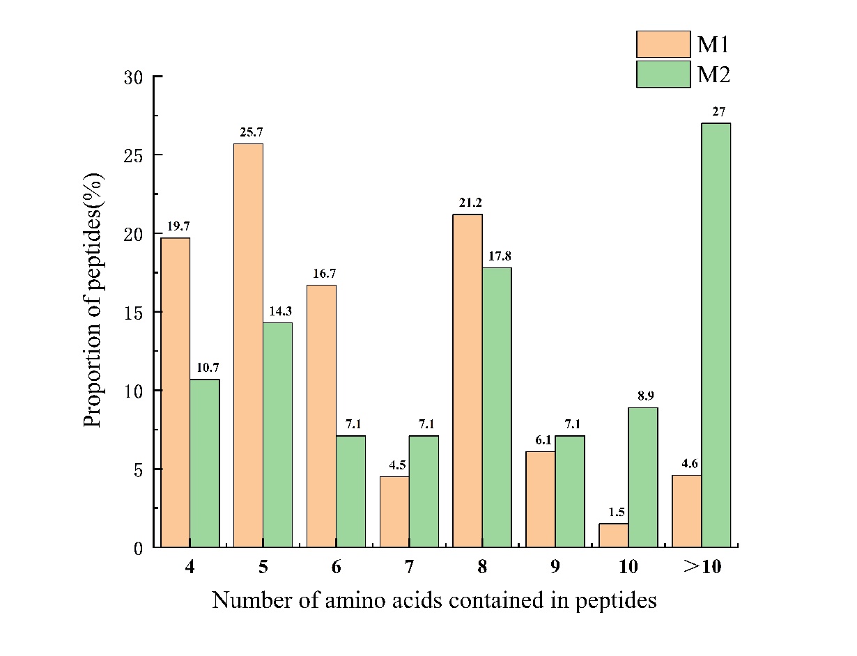 图3 不同来源肽段氨基酸个数占比差异