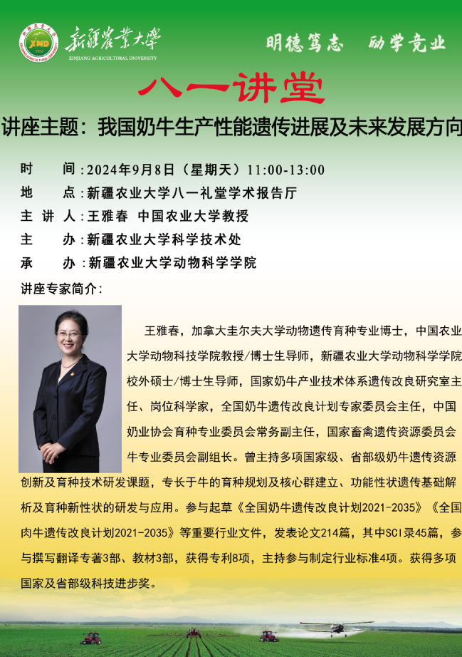【八一讲堂预告】六十八期:我国奶牛生产性能遗传进展及未来发展方向