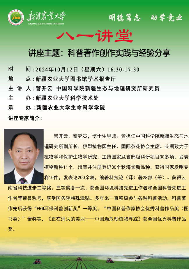 【八一讲堂预告】七十二期:科普著作创作实践与经验分享
