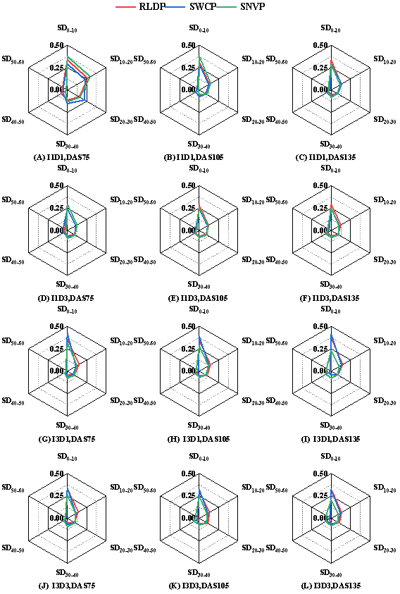 本试验在新疆进行为期3年(2019~2021年)的田间试验。根据作物蒸发蒸腾量(ETc),主区为3个灌溉水平:0.6 ETc(亏缺)、0.8 ETc(典型)和1.0ETc(充足)。3个种植密度为副区:13.5株·m-2(低)、18.0株·m-2(典型)和22.5株·m-2(高)。试验结果如下:在典型灌溉条件下,典型种植密度下的籽棉产量显著高于低密度和高密度种植。但在充分灌溉条件下,低密度种植的产量较高,而高密度种植结合充分灌溉的产量较典型条件(典型灌溉+典型种植密度)减产14.7%。在亏缺灌溉条件下,高密度栽培比低密度或典型密度栽培籽棉增产9.2~23.5%,达到稳产节水20%的效果。典型灌溉+典型种植密度与亏缺灌溉+高种植密度处理的干物质积累和收获指数差异不显著。低灌溉与高种植密度组合的根系分布面积、土壤水分消耗面积和硝态氮消耗面积的重叠率较高,水分生产率高于其他种植密度和灌溉组合。在不影响棉花产量的前提下,亏缺灌溉结合高密度种植可减少20%的水分投入,这可能是由于根系分布和土壤水氮消耗的动态一致性增强,从而提高了水分生产力。这些发现为干旱缺水地区在不影响产量的情况下实现节水提供了宝贵建议。