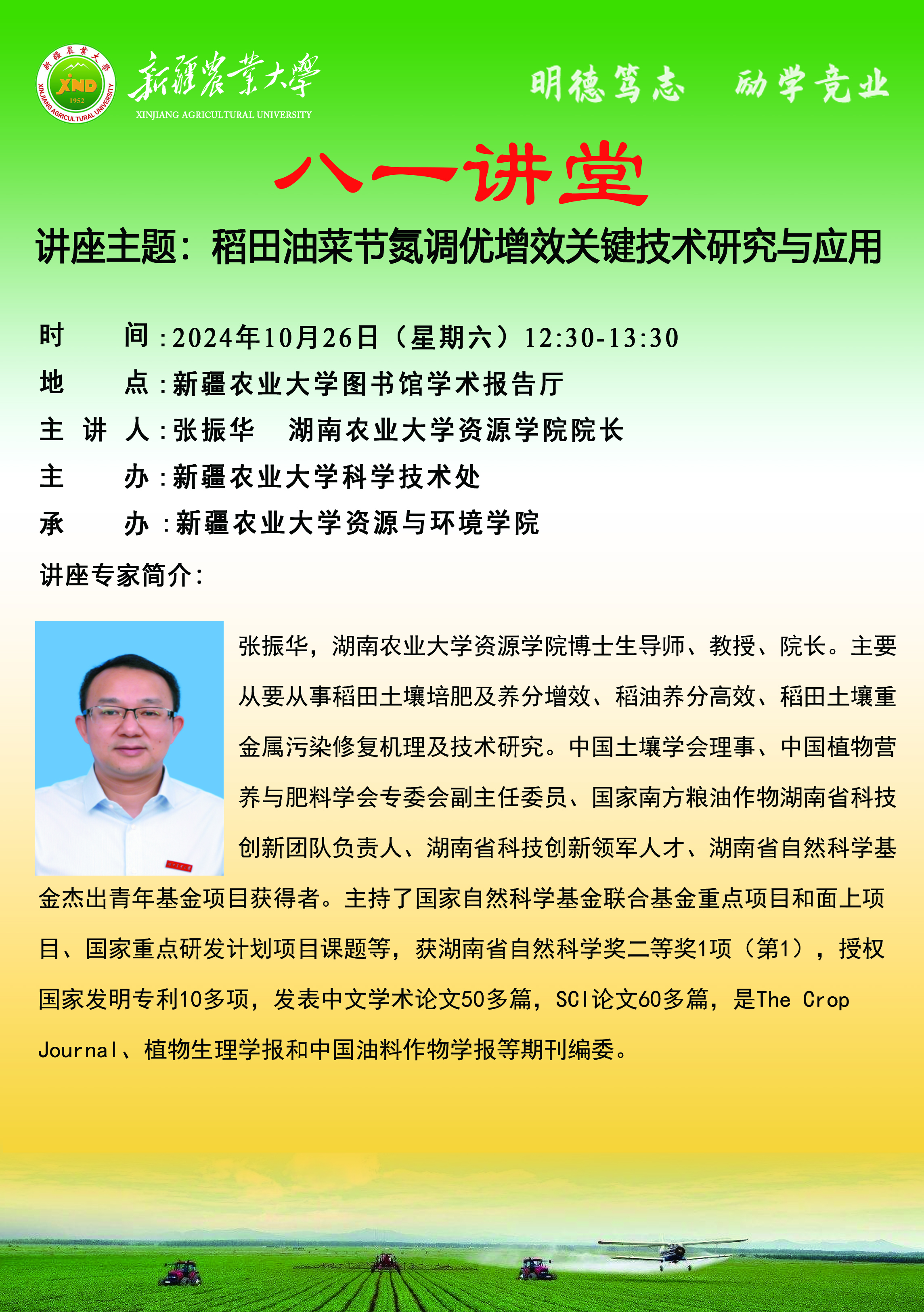 【八一讲堂预告】七十七期:稻田油菜节氮调优增效关键技术研究与应用