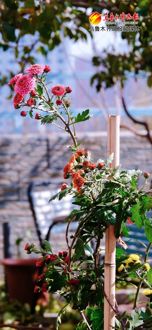 市民在家中小花园种的菊花。 记者江斌伟摄