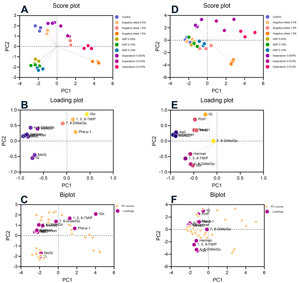 杂环胺是一类具有致癌性和致突变性的化合物,主要在高蛋白食物(如肉类和鱼类)的高温处理过程中形成。白芷作为一种常见的香料,多用于肉类食物的烹调中,除自身的特殊风味外,还含有多种活性成分。研究白芷对杂环胺生成的影响,对于探索有效的杂环胺抑制策略具有重要意义。