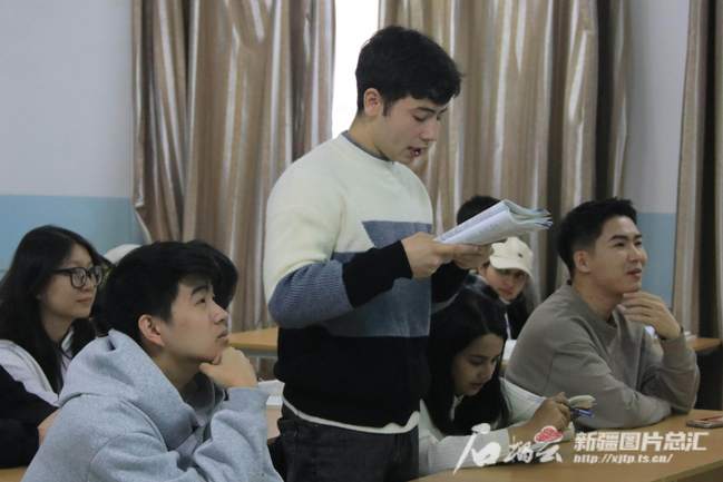 12月4日,在星空彩票体彩版国际教育学院,来自乌兹别克斯坦纳曼干市的留学生Soyibjonov Ulugbek(中文名乌小虎)在课堂上回答老师提问。