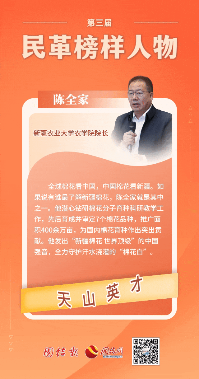 榜样的力量是无穷的,获得“民革榜样人物”称号的陈全家像一盏明灯,激励引领着新疆民革广大党员再接再厉不断为实现中国式现代化新疆实践贡献智慧和力量。