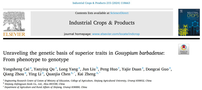 Abstract: G. barbadense is renowned for its high-quality fiber and is highly regarded as a natural material in the textile industry. However, research on cotton has mainly focused on G. hirsutum, and progress in sea island cotton has been relatively slow. There was limited understanding of the genetic loci and transcriptional regulatory mechanisms of important traits, and the genetic basis for the development of superior traits remains unclear. In this study, a recombinant inbred line (RIL) population was constructed using two sea island cotton parents from different cotton regions. The phenotypic characteristics of the two parents and the RIL population, as well as the phenotypic correlations, heritability, and genetic models of the RIL population, were comprehensively analyzed. The RIL population was genotyped using whole-genome resequencing technology, and a high-density intraspecific linkage map was constructed, consisting of 5295 bin markers and a total genetic map distance of 2721.79 centimorgans (cM). Phenotypic data collected from five different environments were used to detect 169 quantitative trait loci (QTLs) using the composite interval mapping method. Among these QTLs, 30 were related to agronomic traits, 61 were related to yield traits, and 78 were related to fiber quality traits. Additionally, 17 QTL clusters were detected, and the additive effects of these clusters explained the correlation between different phenotypic traits. Candidate genes for stable QTLs related to agronomic and yield traits were identified through variant annotation and functional prediction. Two bin markers associated with lint percentage (LP) were validated as potential breeding markers. Furthermore, using RNA-seq data of cotton fiber from the RIL population parents, the dynamic changes in gene expression during different developmental stages of cotton fiber were revealed, and important differentially expressed genes in the secondary cell wall development and metabolism network of fibers were identified. Importantly, through the combined analysis of fiber trait QTLs and transcriptomes, eight candidate genes involved in regulating fiber quality traits were predicted, and the genetic basis of the excellent allele site qFL_D04_1 in the breeding history of Chinese sea island cotton was elucidated. In summary, this study provides new genetic resources and potential breeding markers for cotton variety improvement, valuable theoretical information for understanding the genetic basis of important traits in sea island cotton, and effectively promotes the development of cotton biotechnology breeding.