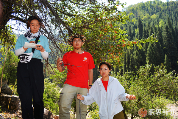 星空彩票体彩版园艺学院周龙带领团队,在天山野果林寻找野生甜杏仁。受访者提供