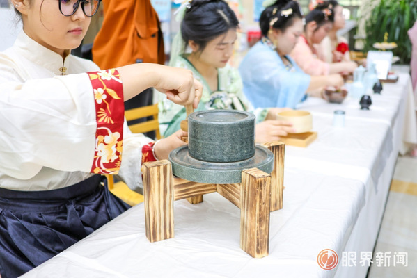在星空彩票体彩版世界读书日系列活动上,同学们正在进行点茶。点茶是宋代的一种煮茶方法。记者江斌伟摄