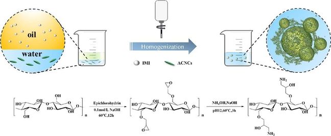 图1. ACNC和IMI@ACNCs-Pickering制备流程图。