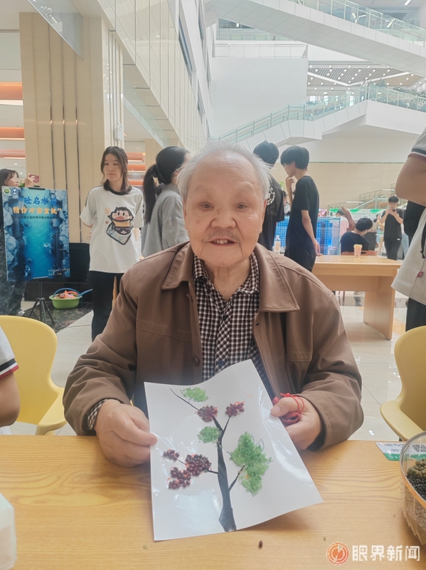 最温馨画面出现在种子拼绘区,89岁的石定隧教授正在专注地贴着种子画。自2002年退休后,依然心系校园。得知此次活动,他特意赶到现场,将一颗颗种子仔细粘贴在画板上。记者江斌伟摄