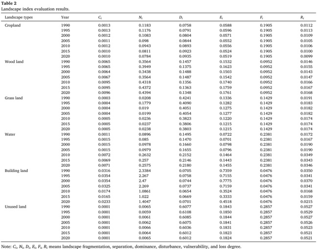表2 景观格局指数