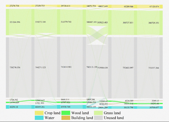 图4 1990-2020年塔里木河流域土地利用转移矩阵
