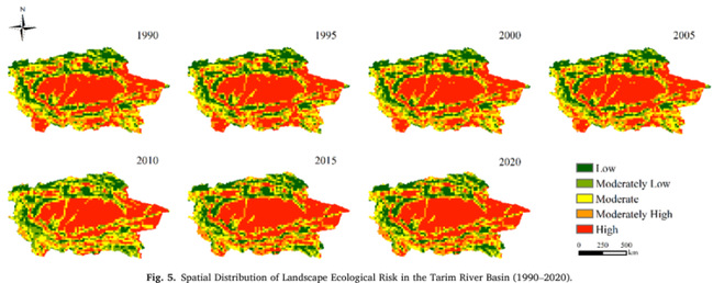 本研究针对上述研究空白,开展塔里木河流域过去30年的景观生态风险分析,旨在揭示生态风险的演变模式及驱动机制。研究采用基于土地利用变化的生态风险评估方法,并结合地理探测器和机器学习模型,深入分析生态风险与社会-环境因素之间的交互作用及非线性关系。研究成果将为全球干旱区土地利用变化及生态风险形成机制提供科学依据,同时为干旱区空间治理决策提供重要参考。