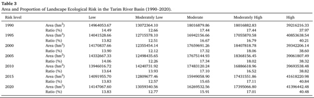 表3 1990-2020年塔里木河流域景观生态风险的面积个比例