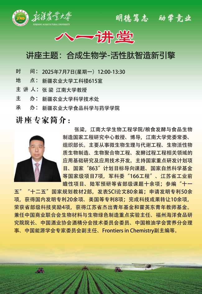 【八一讲堂预告】九十七期:合成生物学-活性肽智造新引擎